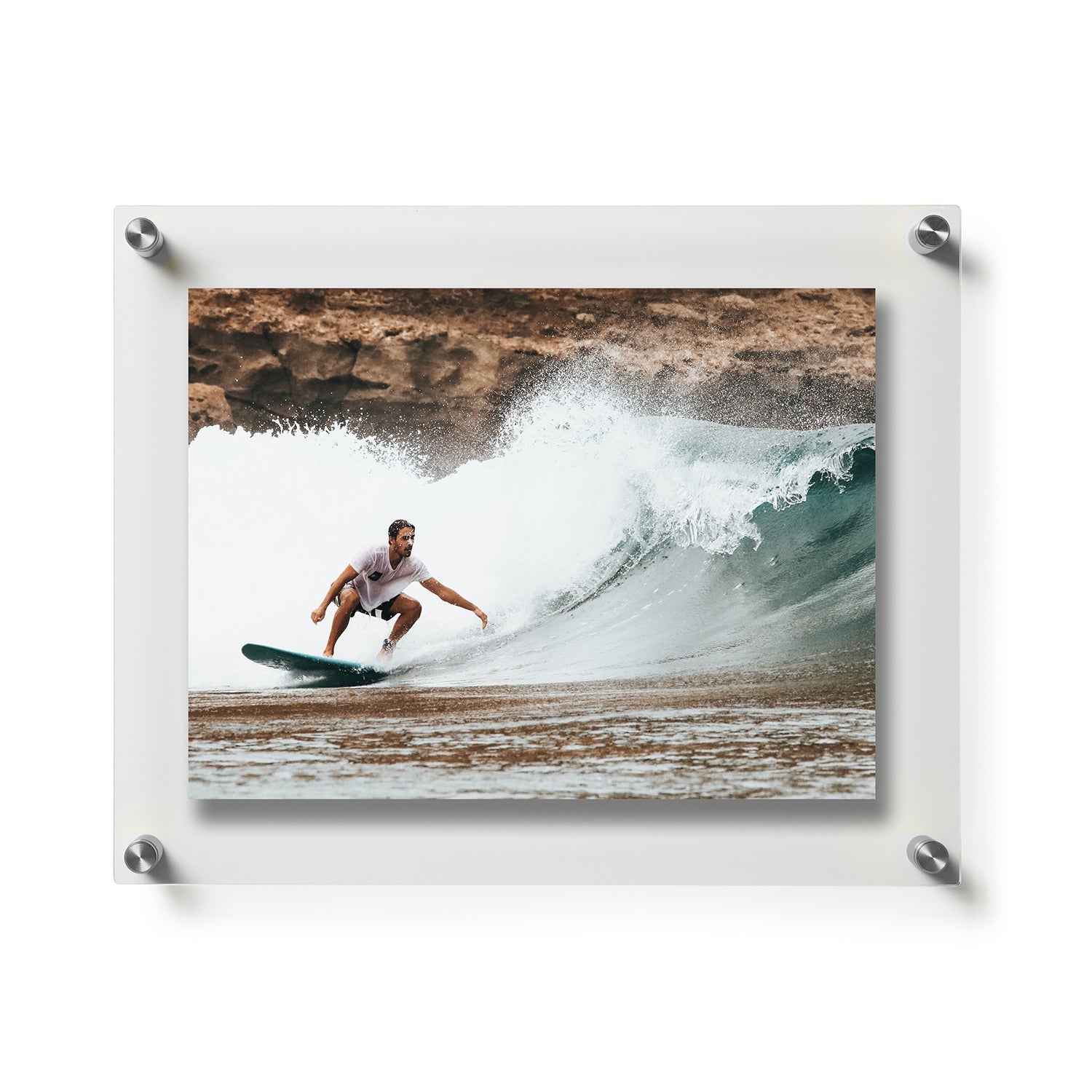 Your art can be changed in as little as 20 seconds, making it the perfect frame for kids' art, seasonal imagery, retail displays and more. When you want to change out your display, just unscrew the caps on the hardware and lift off the acrylic. Curious how to hang it? Watch this 20 second video. Not sure how to hold your artwork in place between the acrylic? Don't worry, we've thought of that too. Click here.