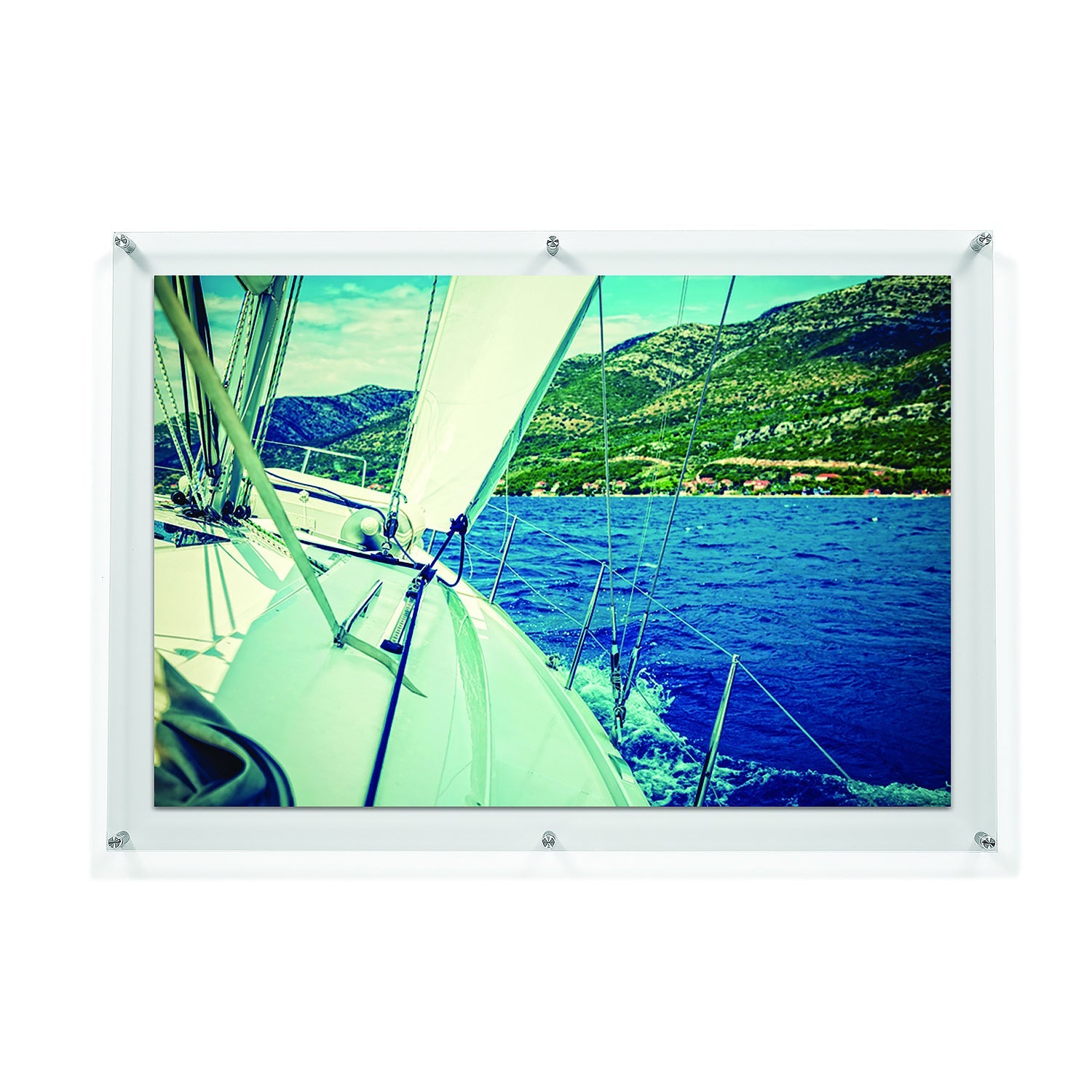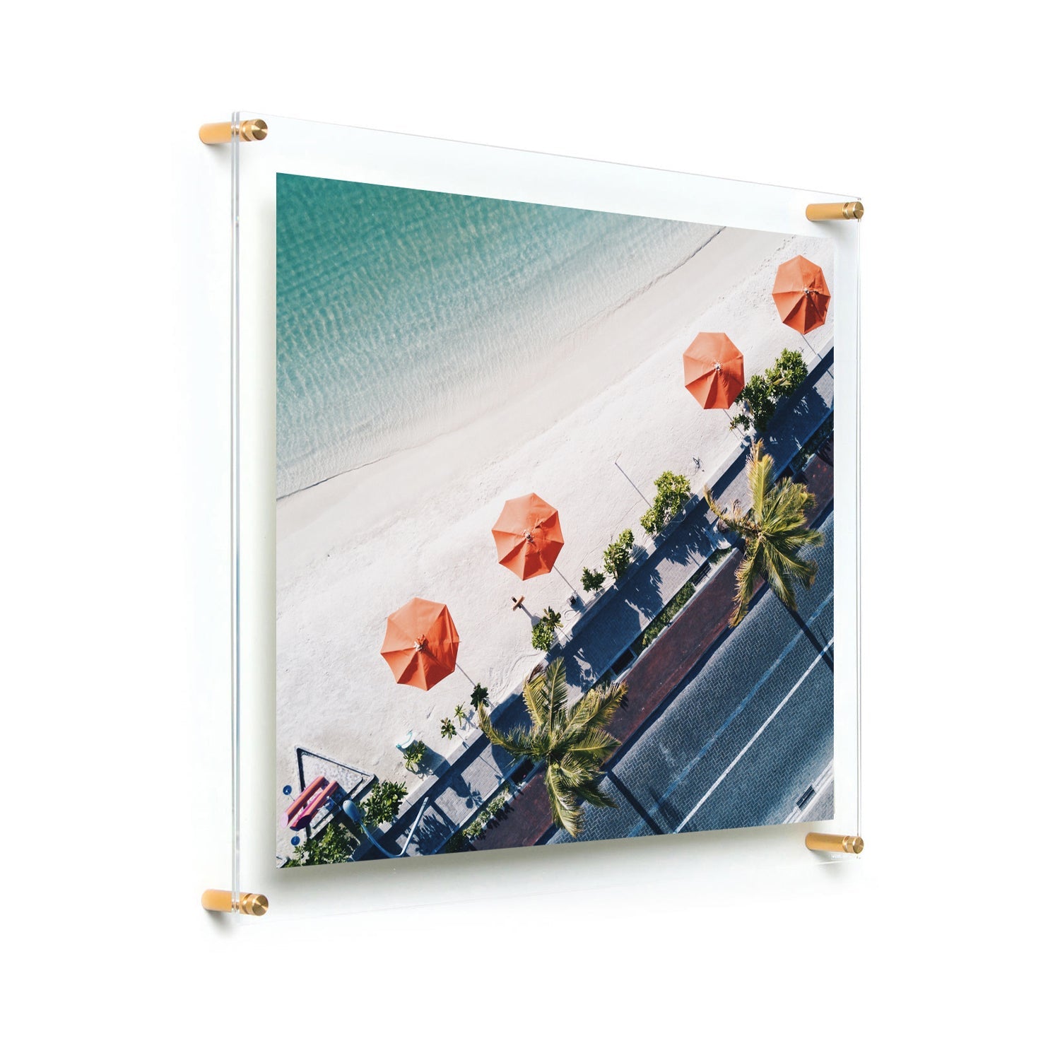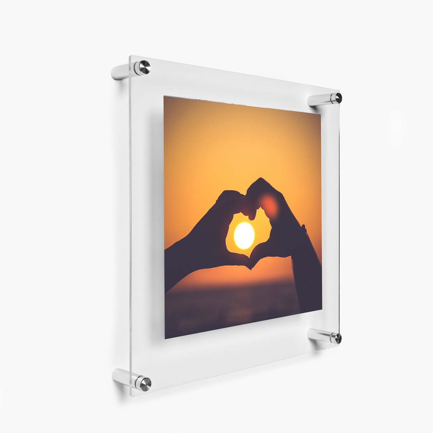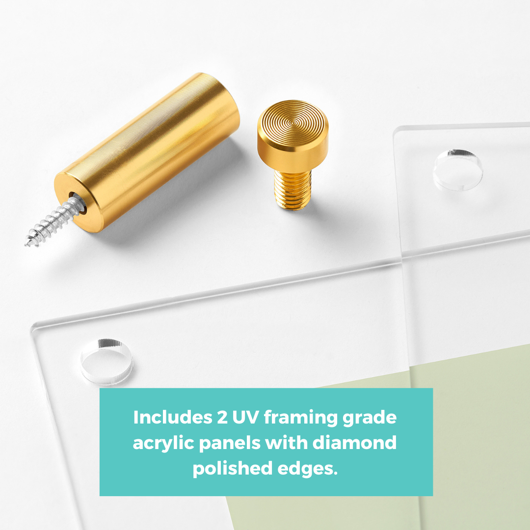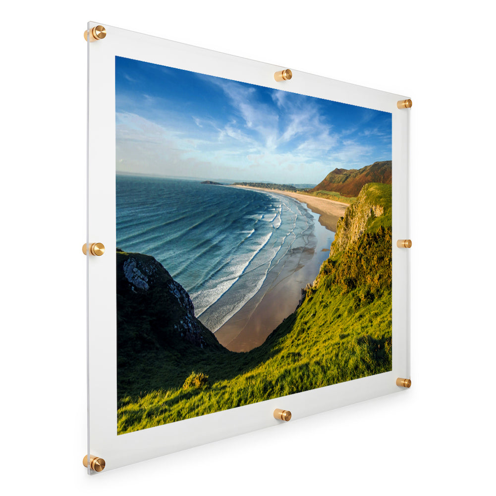 Bring your framing game to the next level with these stunning acrylic floating frames with gorgeous metal hardware. Two panels of floating acrylic "sandwich" your art for a border-less presentation. Frameless frames (also known as lucite or plexiglass frames) let your art and photos take center stage and Wexel's 98% UV Protected grade acrylic is mar-resistant and diamond polished giving your frame the perfect finishing touch. These can be hung vertically or horizontally.