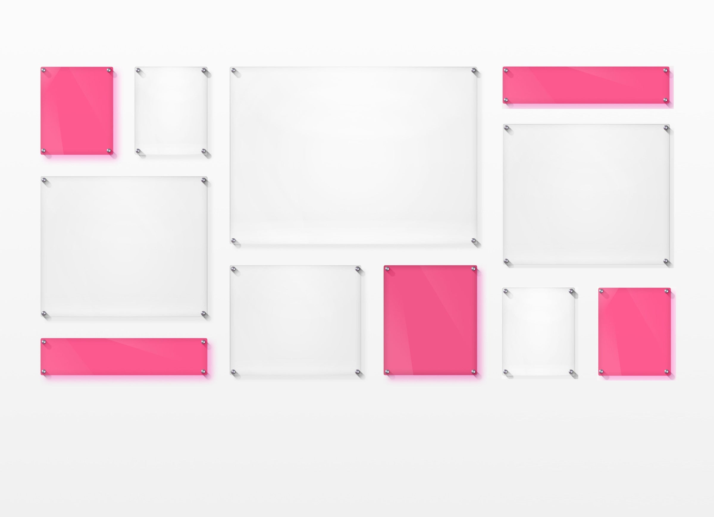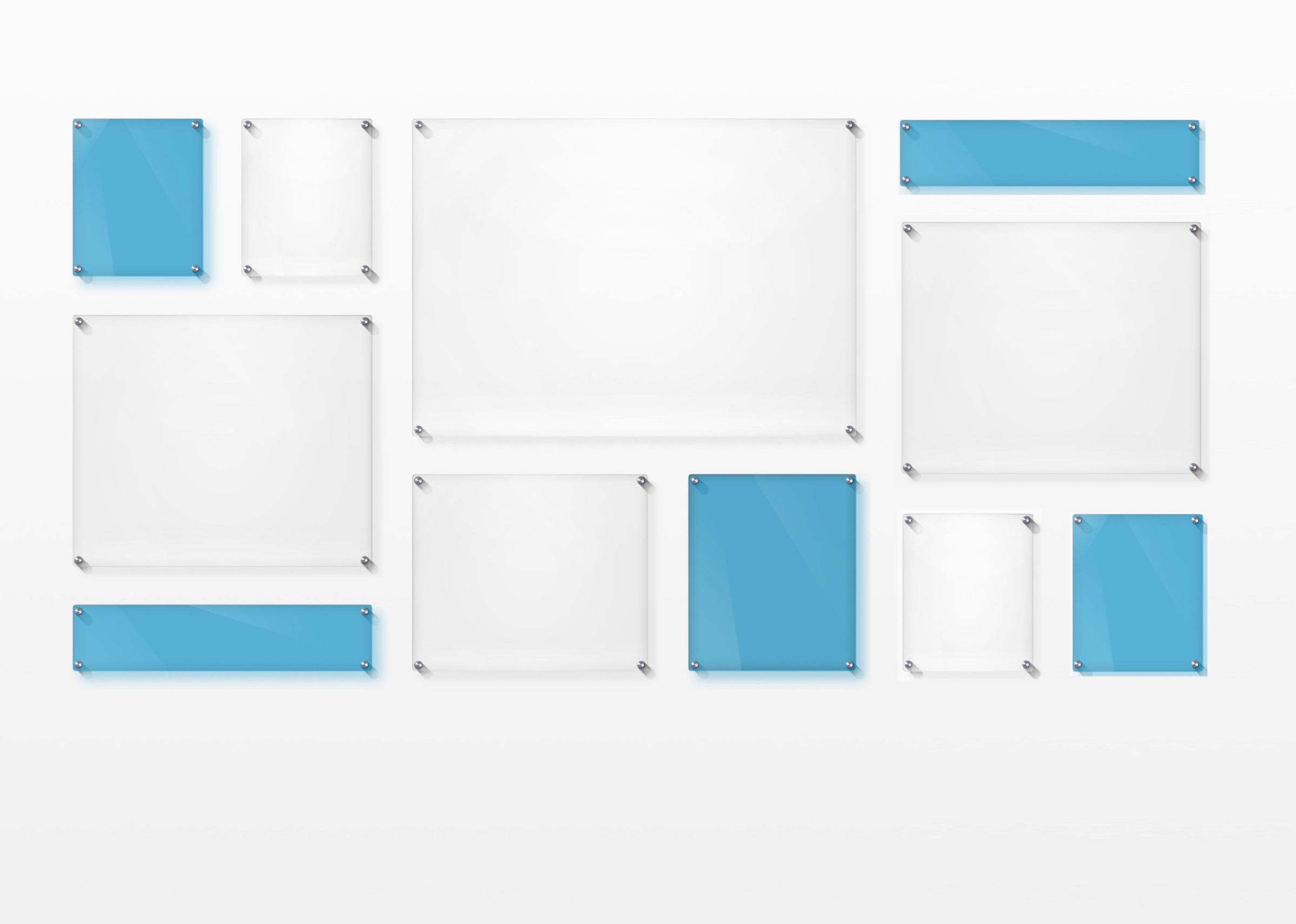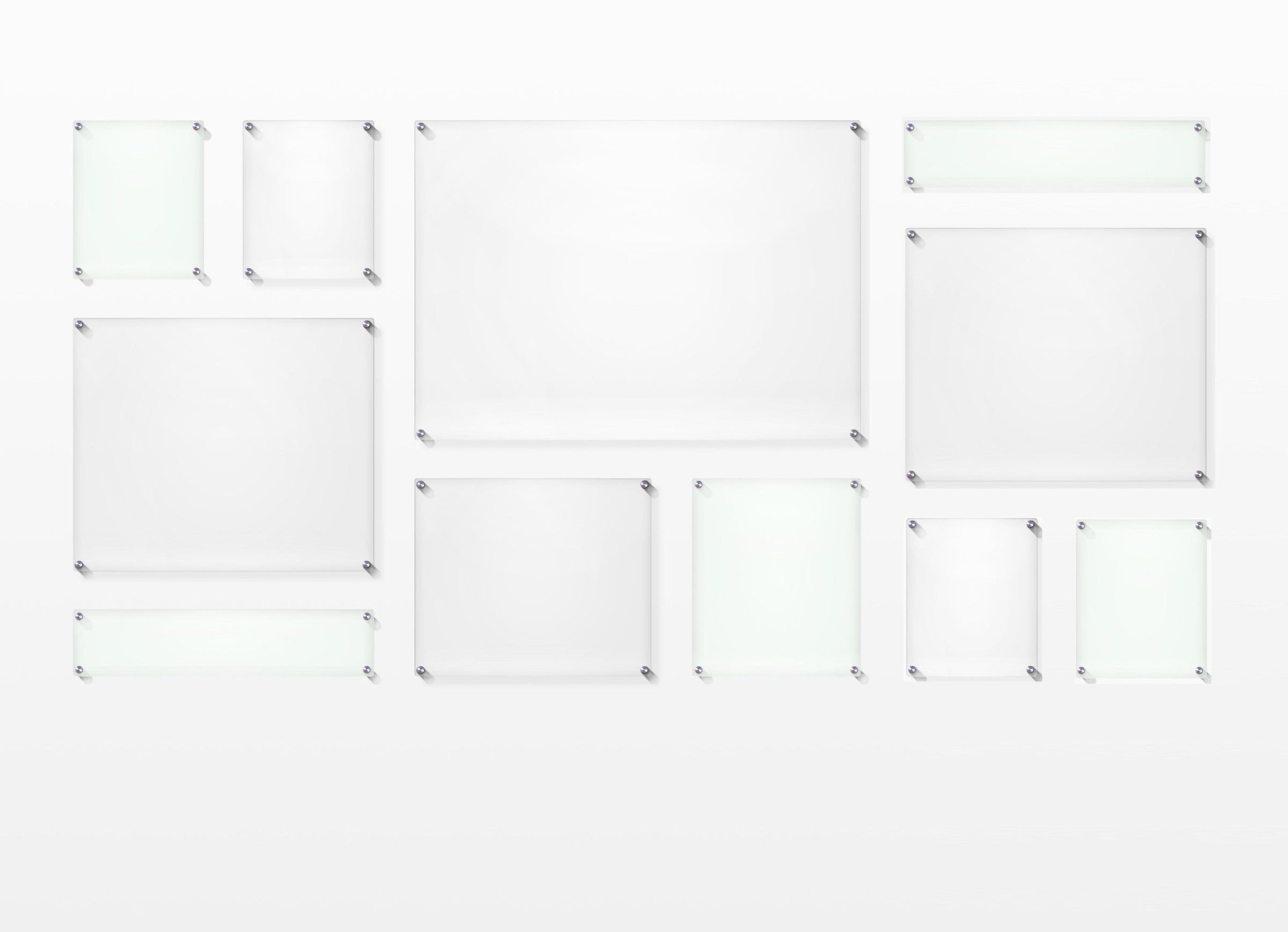 • 11 Acrylic Wall Frames ◦ 4 @ 12x10"