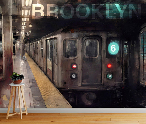 Brooklyn Art Wallpaper. Subway 6 Train Peel and Stick Wall Mural #6516