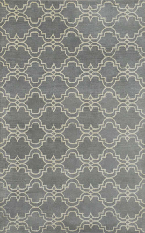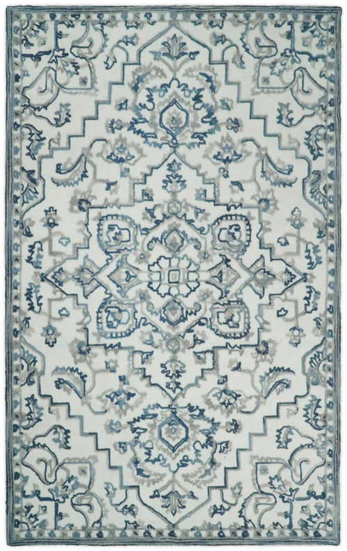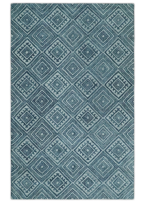 5x8 Blue and Silver Geometrical Pattern Hand Tufted Farmhouse Wool Area Rug