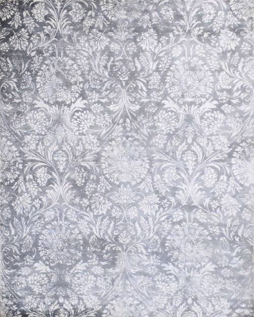 5x8 Blue and Silver Handmade Area Rug Made With Fine Viscose