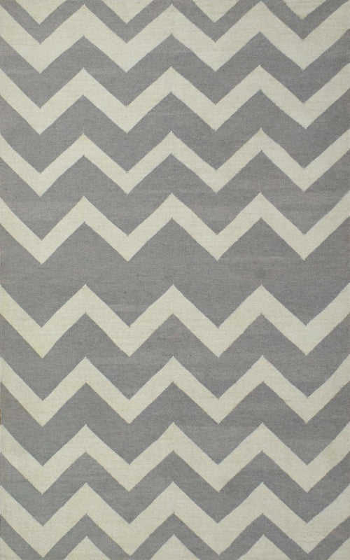 5x8 Dhurrie Rug, Gray and White Chevron Pattern Rug
