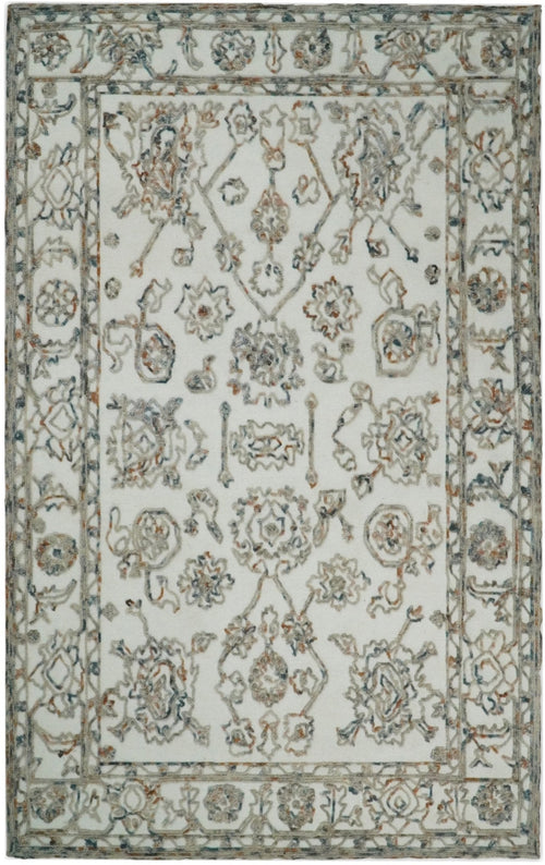 5x8 Beige, Rust, Ivory and Charcoal Geometrical Pattern Hand Tufted Wool Area Rug