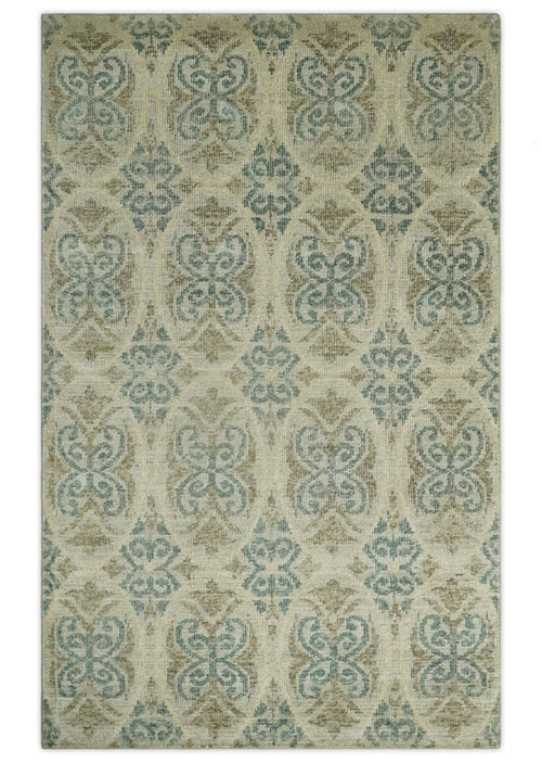 5x8 Gray and Beige Wool Area Rug | Handmade Area rug made with fine wool