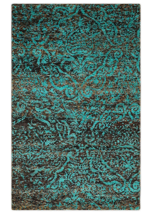 5x8 Hand Knotted Blue and Brown Modern Persian Style Contemporary Recycled Silk Area Rug | OP103