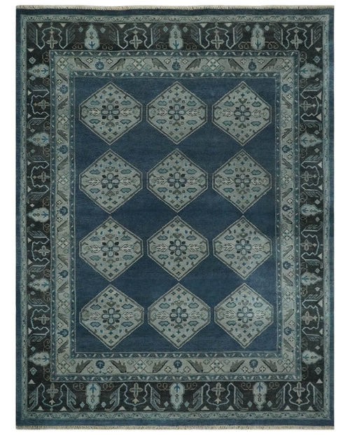 8.4x11.6 Blue, Silver and Charcoal Hand knotted Traditional wool Area Rug
