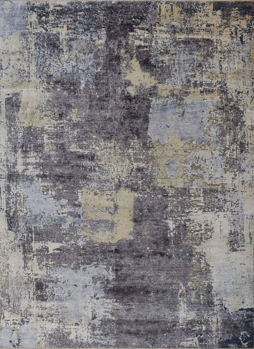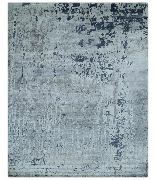 8x10 Abstract Pattern Hand knotted Silver and Blue modern Bamboo Silk Area Rug