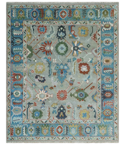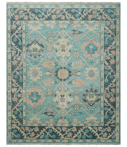 8x10 All Wool Traditional Persian Blue Teal and Ivory Vibrant Colorful Hand knotted Oushak Area Rug