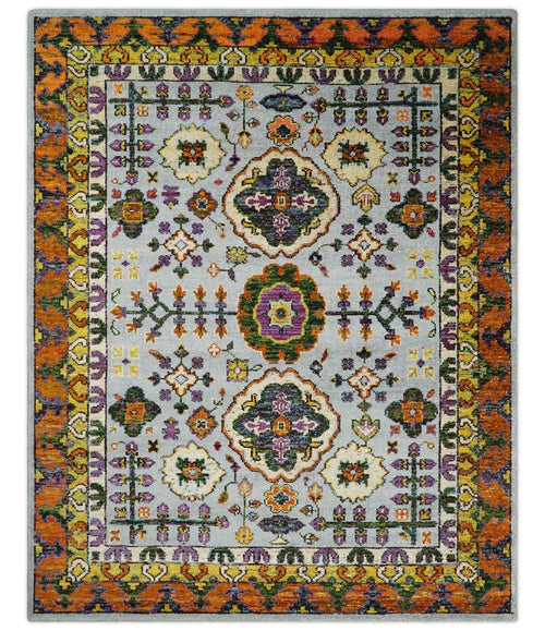 8x10 and 9x12 Modern Oushak Hand Knotted Persian Purple and multi Colorful Wool Area Rug | TRDCP858