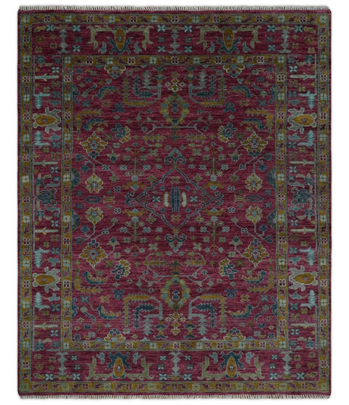 8x10 Modern Oushak Hand Knotted Persian Purple and Ivory Colorful Wool Area Rug | TRDCP841810