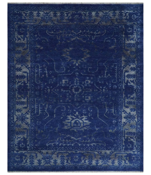 8x10 Hand Knotted Oriental Oushak Blue and Silver Wool Area Rug | TRDCP1507810S