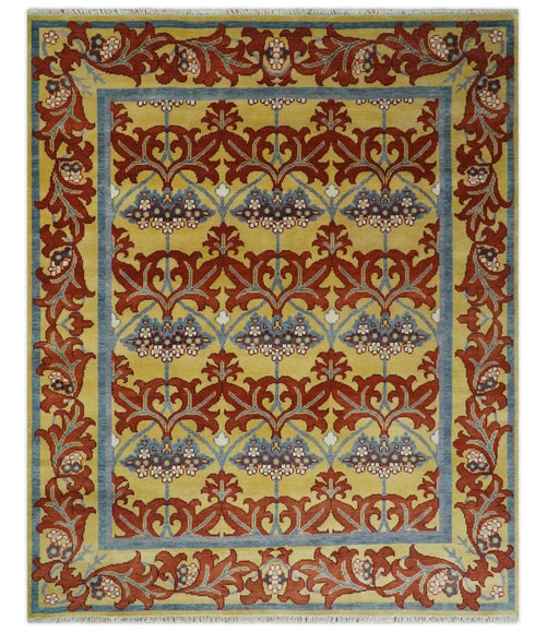 8x10 Hand Knotted Rust, Gold and Gray William Morris Wool Rug | TRDCP1000810