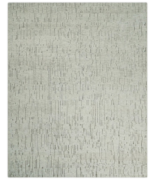 8x10 Hand Knotted Woolen Modern Contemporary Beige and Gray Tribal Area Rug | TRDCP637810