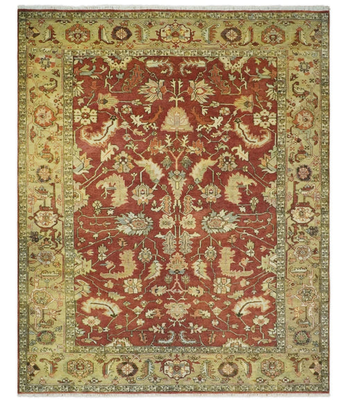 8x10 Hand Knotted Rust and Ivory Traditional Vintage Persian Oushak Antique Wool Rug | TRDCP658