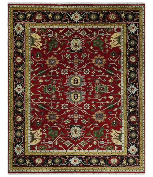 8x10 Hand Knotted Maroon and Gold Heriz Serapi Traditional Antique Style Wool Area Rug | TRDCP1603810S