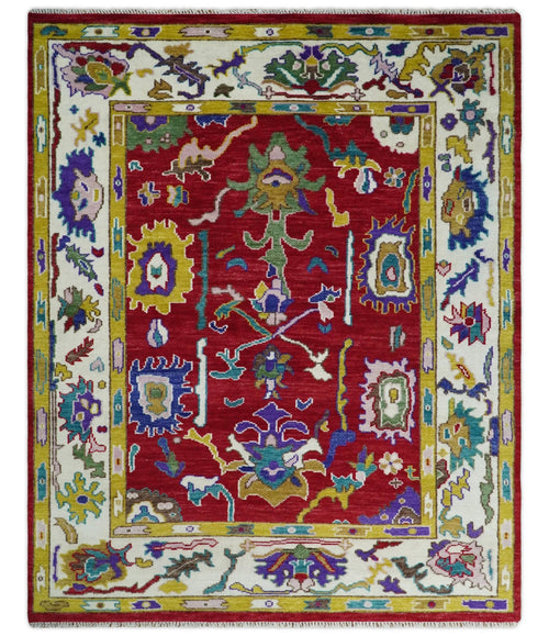 8x10 Wool Red and White Colorful Traditional Oushak Eclectic Hand knotted Bohemian Area Rug | TRDCP319810