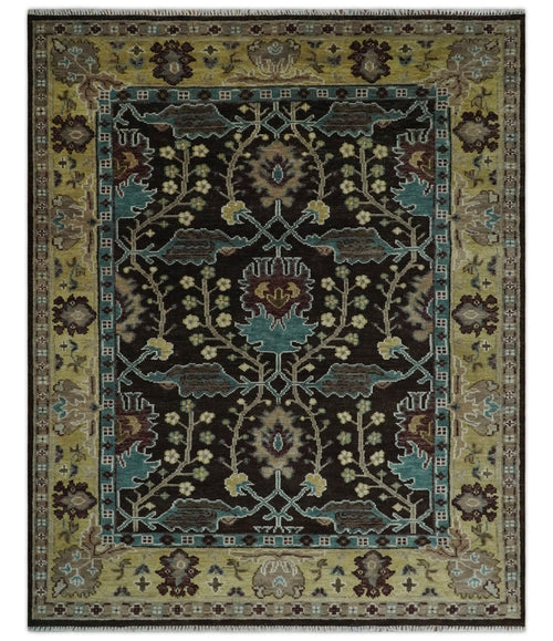 8x10 Wool Traditional Black, Beige and Blue Antique Style Hand knotted Oushak Area Rug | TRDCP1500810S