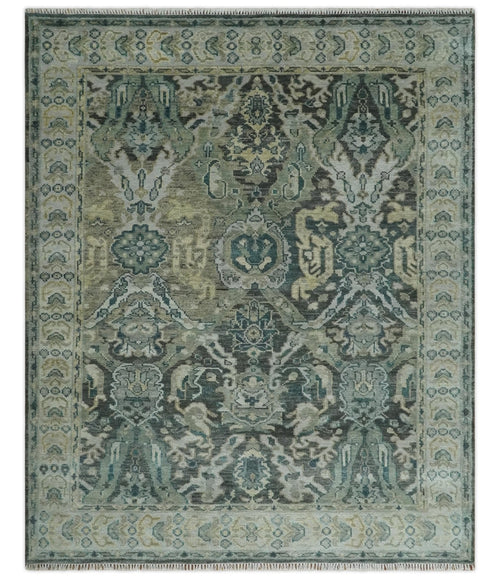 8x10 Wool Traditional Gray and Silver Antique Colorful Hand knotted Oushak Area Rug | TRDCP1328810S