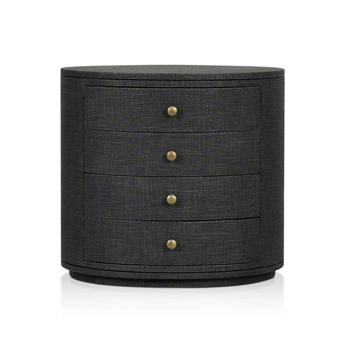 Amelia Black Linen Oval Nightstand | shipping 9/3/2025