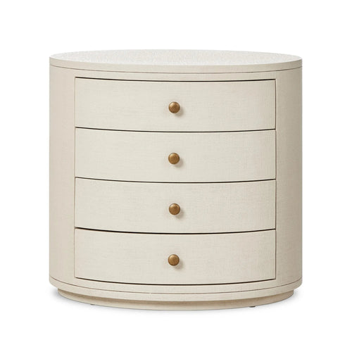 Amelia Ivory Painted Linen Oval Nightstand | shipping 7/18/2025