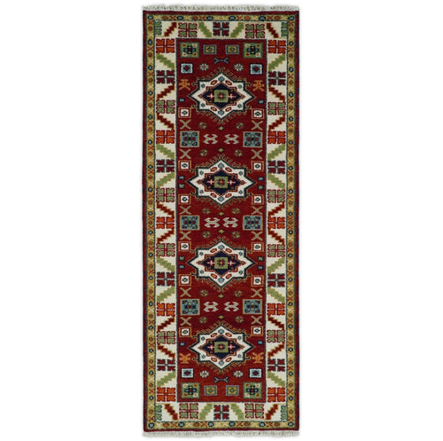 2.9x8 Hand Knotted Antique Kazak Runner Blue and Rust Traditional Tribal Armenian Rug | KZA6