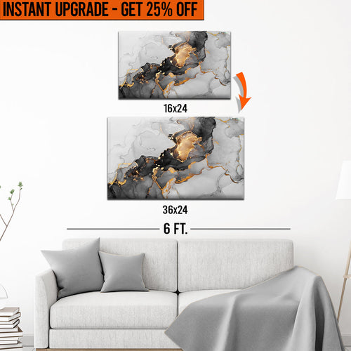 Upgrade Your 'Black Gold Marble' Canvas To 36x24 Inches