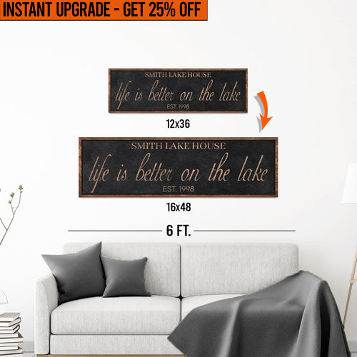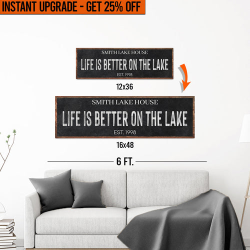 Upgrade Your 12x36 Inches 'Life Is Better On The Lake' (Style 1) Canvas To 16x48 Inches