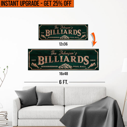 Upgrade Your 12x36 Inches 'Neighborhood Pool Hall Billiards' (Style 1) Canvas To 16x48 Inches