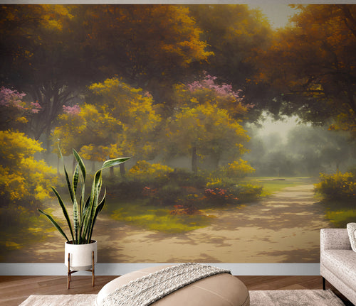 Vintage Trees in Park Wallpaper. Peel and Stick Wall Mural. #6496