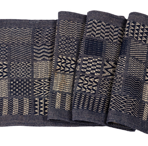 Artisan Hand Loomed Cotton Table Runner - Indigo Blocks - 18"x96"