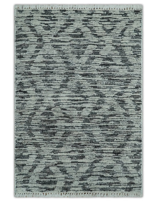 2x3 Hand Knotted Silver and Charcoal Geometrical shape Wool Rug