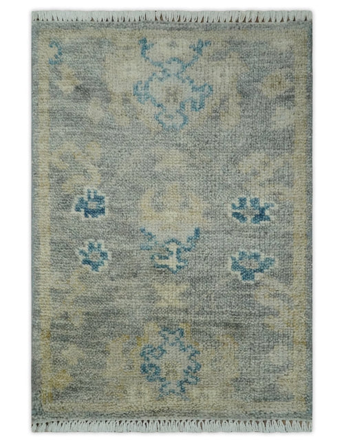 2x3 Hand Knotted Gray, Ivory and Silver Traditional Persian Oushak Wool Rug | N6323