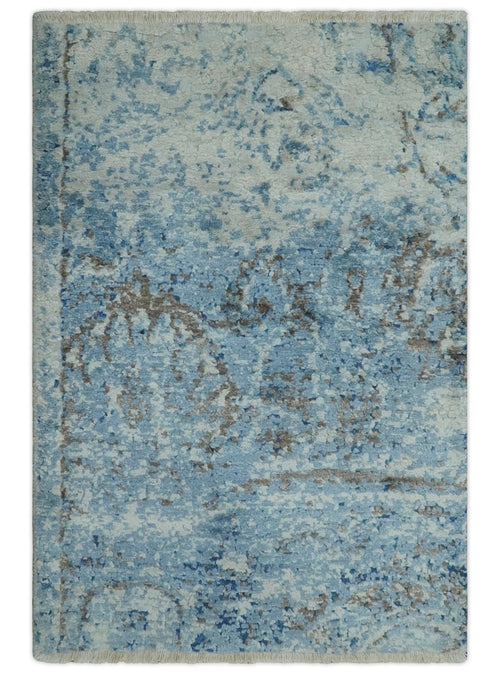 2x3 Modern Abstract Blue, Ivory and Charcoal Rug made with Bamboo silk | N5723