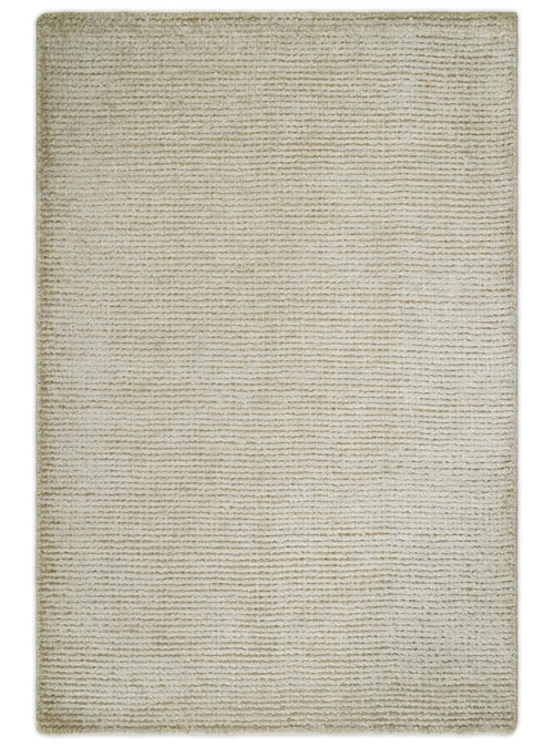 2x3 Hand Knotted Solid Beige Rug, Low Pile, No Shedding | N6023