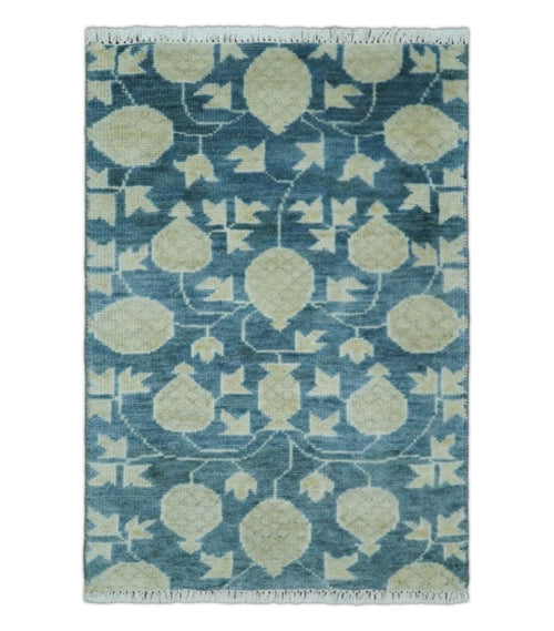 2x3 Handmade Persian Design Blue and Beige made with wool Area Rug | TRDCP15823