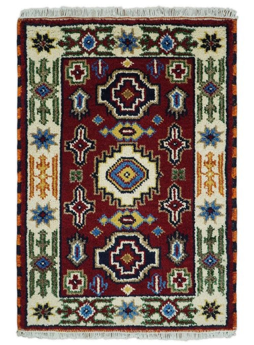 2x3 Hand Knotted traditional Kazak Red and Ivory Armenian Tribal Entryway Rug | KZA11