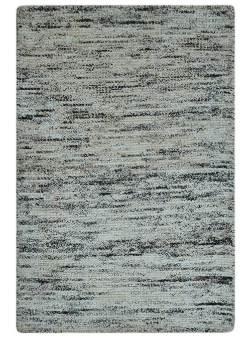 2x3 Handmade Abstract Design Silver, Ivory and Black made with fine wool Area Rug | TRDCP126523