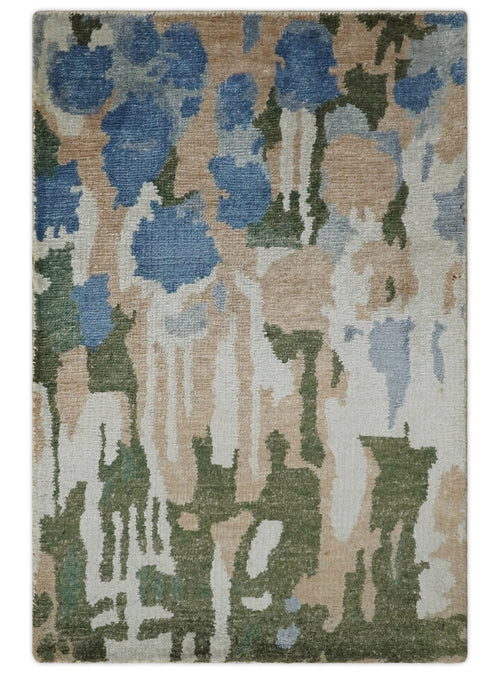 2x3 Modern Abstract Green, Peach, Silver and Blue Rug made with Art Silk| N3723
