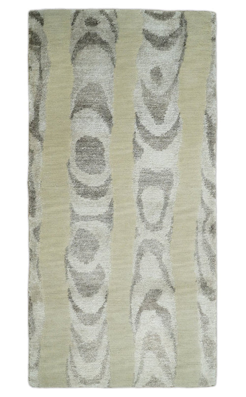 2x4 Entryway Modern Abstract Ivory and Gray Wool Rug Made with Art Silk