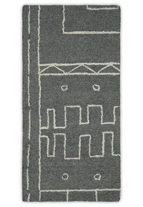 2x4 Gray and White Tribal Hand Hooked Textured Loop Area Rug | TRIB2