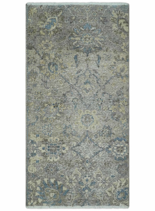 2x4 Gray and Silver Wool Hand Knotted traditional Vintage Antique Rug| N1024
