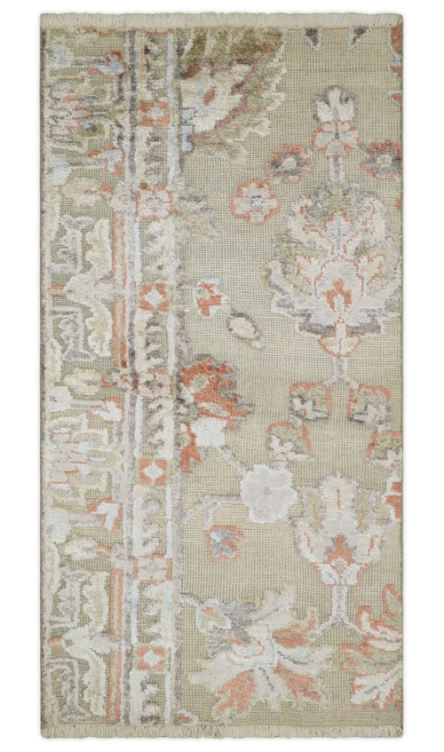 2x4 Hand Knotted Ivory, Olive and Rust Traditional Persian Oushak Wool | N8024