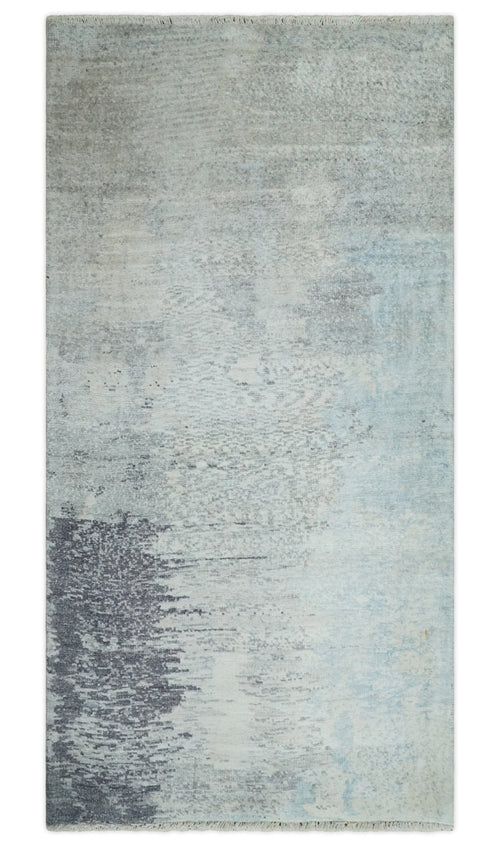 2x4 Modern Abstract Blue, Silver and Charcoal Hand Knotted Art Silk Rug| N8324