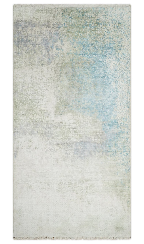 2x4 Modern Abstract Blue and Ivory Art Silk Rug| N8124