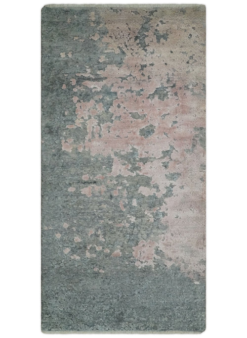2x4 Modern Abstract Gray and Pink Wool and Silk Hand Knotted Rug| N224