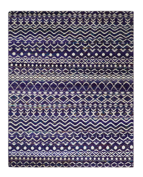 4x6 and 8x10 Hand Knotted Blue and White Modern Contemporary Southwestern Tribal Trellis Recycled Silk Area Rug | OP6