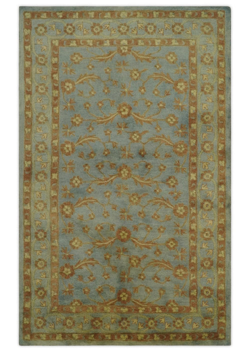 4.10x7.9 Silver, Rust and Beige Traditional Floral Hand Tufted Wool Area Rug