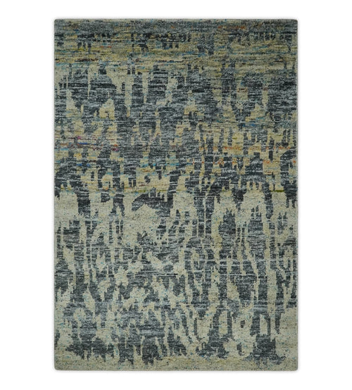 4.5x6.5 Hand Knotted Beige, Camel and Charcoal Modern Abstract Contemporary Recycled Silk Area Rug | OP127