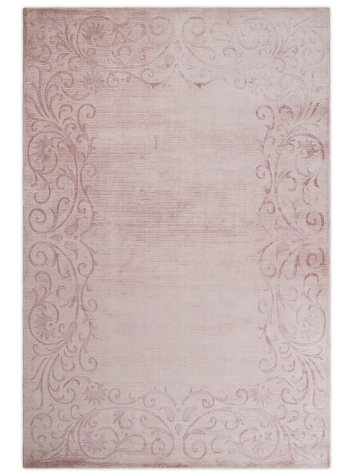 4x6 and 6x9 Hand Woven and Carved Pink Floral Art Silk Rug | KNT2